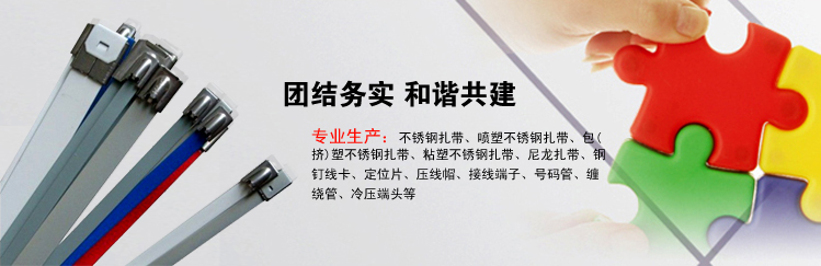樂(lè)清迎發(fā)電纜附件有限公司專(zhuān)業(yè)生產(chǎn)不銹鋼扎帶、噴塑不銹鋼扎帶、包(擠)塑不銹鋼扎帶、粘塑不銹鋼扎帶、尼龍?jiān)鷰А撫斁(xiàn)卡、定位...