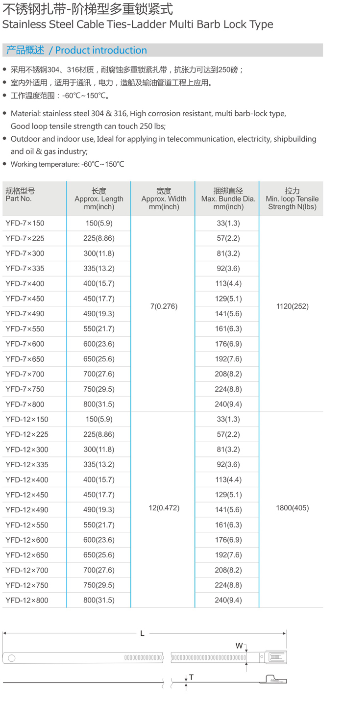Stainless Steel Cable Ties-Ladder Multi Barb Lock Type