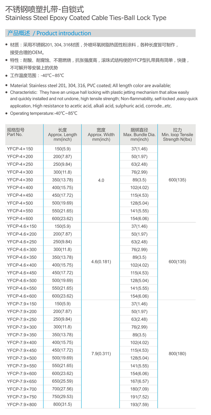 Stainless Steel Epoxy Coated Cable Ties-Ball Lock Type