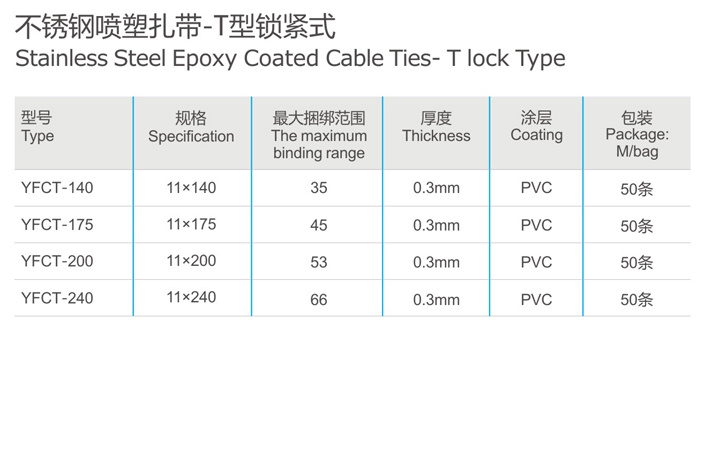 Stainless Steel Epoxy Coated Cable Ties-T Lock Type