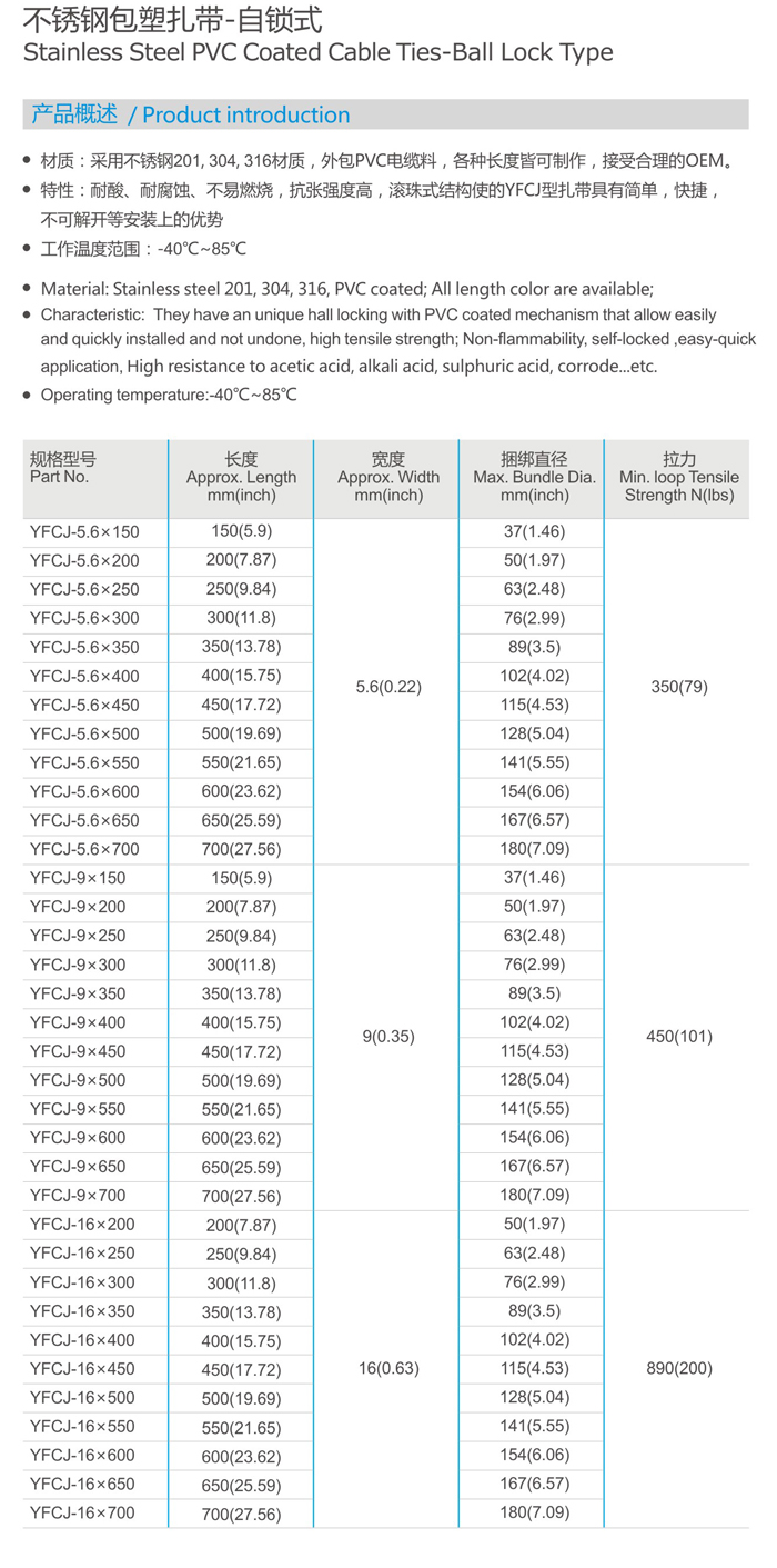 Stainless Steel PVC Coated Cable Ties-Ball Lock Type