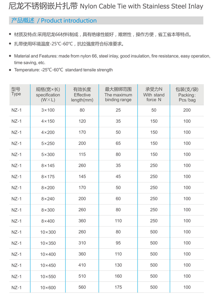 尼龍不銹鋼嵌片扎帶